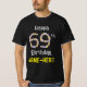 Esta camiseta floral, inspirada no jardim, tem a mensagem "Feliz 69º Aniversário," junto com um nome personalizado. O grande número "69" contém vários ícones de flor. Camisas florais divertidas, editáveis como esta podem ser vestidas pelos participantes/convidados de uma festa para celebrar alguém que está fazendo 69 anos. [~Z0000656]