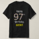 Este design de camisa de festa de aniversário floral e inspirada na natureza mostra a mensagem "Feliz 97º Aniversário," junto com um nome personalizável. O grande número "97" consiste em vários ícones de flores. Camisas florais divertidas, personalizáveis como esta podem ser vestidas pelos convidados numa festa de aniversário realizada em comemoração do 97º aniversário de alguém. [~Z0000656]