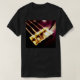 A fotografia abstrata original neste t-shirt centra-se sobre a base de uma guitarra baixa elétrica, a peça onde as cordas comecem e aumentem toda a maneira até o pescoço. A coloração da foto do close up é feita nos ricos, em marrons mornos profundos com uma luz dourada na placa de metal, em cordas, em parafusos e em primaveras.