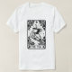 Um design gráfico ousado para o amante ávido do chá. mão esquelética segurando uma xícara de chá com bordas florais. Preto e Branco.