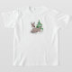 Esta imagem é projetada com um pombo deitado na neve debaixo de uma árvore. A árvore tem bagas nela. As lavouras de neve estão descendo cobrindo as árvores e o chão. Essas camisetas estão disponíveis em estilos, cores e tamanhos variados. Uma camisa de excelente feriado.