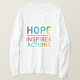 Esta design de camiseta vibrante e atraente apresenta a poderosa mensagem "Esperança inspira ações" em letras corajosas e multicoloridas. O fundo abstrato adiciona um elemento dinâmico e artístico, fazer-o como uma peça visualmente impressionante. A design é perfeita para quem acredita no poder transformador da esperança e na importância de agir.