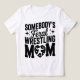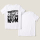 Esta t-shirt branca apresenta o texto "MOM Feral LUTA DE ALGUÉM" numa letra preta a negrito com sotaques de estrelas. A palavra "MOM" é grande e estilizada, incorporando uma forma cardíaca com uma silhueta de um dentro de lutador. A design celebra com humor uma mãe luta apaixonada e solidária.