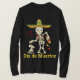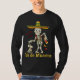Dos HOMENS MEXICANOS da CELEBRAÇÃO do FERIADO de DIÂMETRO DE MUERTOS (DIA DO MORTO) o T-SHIRT LONGO da CAPA de S 'que caracteriza um homem de esqueleto festivo que veste um Sombrero mexicano, guardarando uma garrafa do Tequila, e rosas vermelhas bonitas e as videiras longas da haste que crescem de dentro de e que florescem entre os ossos e a caixa torácica, por seu lado é animal de estimação de esqueleto do cão do melhor amigo de um homem, e no fundo um pares de olhos espirituais vermelhos misteriosos e de uma cara que incandesce na obscuridade, e em pimentas vermelhas e amarelas. T-shirt #Ideal do partido e da celebração para o Diâmetro De Muertos Cumprimento e feriado, paradas da rua e festividades.
