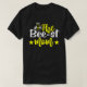 Esta camiseta preta mostra a frase "A mãe das ruas de abelhas" em um design lúdico. "As" e "Mãe" estão escritas num guião amarelo que flui, enquanto "ruas de abelhas" está em letras brancas a negrito com uma pequena ilustração de abelhas acima dela e estrelas amarelas em ambos os lados. É um doce design celebrando uma mãe maravilhosa.