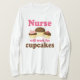 A enfermeira - trabalhará para cupcakes! Este design bonito dos cuidados faz um grande presente para todo o RN, estudante dos cuidados, formando dos cuidados ou enfermeira. Três cupcakes do chocolate com glacé cor-de-rosa têm citações da enfermeira em cor-de-rosa cercando o.