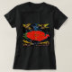 Cartão tarô da roda da fortuna em preto, vermelho e amarelo.