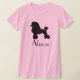 Estoire seus meias do bobby e calçados de sela e comece-os dançar! Esta saia customizável da caniche inspirou o olhar do t-shirt como uma saia clássica da caniche dos anos 50. As características de design uma silhueta preta de uma caniche. Olha grande em uma camisa cor-de-rosa. Clique simplesmente sobre "personalizam-no" ícone para substituir o texto existente com seus próprios. Está começando a olhar muito como os anos 50!