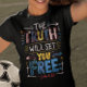 Um verso Bíblia delicadamente desenhado diz que a verdade o libertará. As palavras estão cercadas por designs e padrões intrincados, criando uma peça de arte visualmente cativante e inspiradora.
