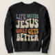 Abraçar o poder da fé com o nosso design exclusivo "A Vida com Jesus apenas melhora" - uma fonte de inspiração para os crentes que buscam esperança, amor e bênçãos em cada passo da sua jornada. Que este cristão cite ser um início de conversa, um símbolo de sua devoção, e um lembrete de que com Jesus, os desafios da vida se transformam em pedras para a grandeza. Vista sua fé orgulhosa!