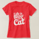 Um gráfico de texto branco sobre fundo preto. O texto diz "A vida é melhor com um gato" em uma fonte estilizada e cursiva. Uma pequena silhueta de um gato é posicionada entre as palavras "Melhor" e "com". Esta design é perfeita para amantes de gatos e ficaria excelente em t-shirts, canecas ou outras mercadorias. O texto em negrito e branco se destaca em relação ao fundo preto, fazer fácil de ler e entender.
