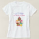 Uma t-shirt com uma citação engraçada, com uma ilustração de um sundae de sorvete de 3 scoop, com aspersores coloridos. Um cone de sorvete com colheres de chocolate, morango e baunilha. Uma tigela de sorvete neopolita com uma cereja em cima. Morangos e uma fruta de abacaxi sentam ao lado das tigelas.