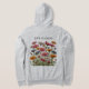 A capuz de cinza clara das mulheres com a Vida é um bom texto com lindas flores silvestres. Também um buquê de flores na frente do capuz.