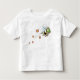 A abelha pequena bonito zumbe ao redor na parte dianteira desta camisa.
