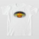 Esta design apresenta uma abóbora laranja que parece estar brilhando no escuro. Uma vela acende os olhos e sorri. Uma sombra escura é vista atrás e nos lados da abóbora. Essas camisetas vêm em estilos, cores e tamanhos variados.