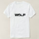 Abraça a Selvagem. Esta design captivadora mostra uma silhueta de lobo contra um pano de fundo de uma lua brilhante, criando uma imagem impressionante e simbólica.