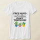 Camiseta Gratuita e sarcástica de abraços Gratuitos para amantes de cacto, com três encantadores cactos de cartoon com potes coloridos, com a legenda "Abraços Gratuitos - brincadeira - não me toquem!" em letras negras modernas. Para pedidos personalizados, queira contactar-me em zolicestore@hotmail.com (permitir 1-2 dias úteis)