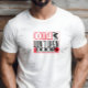 A design de camiseta incorpora o ditado "Velhos modos não abrem novas portas", que é o elemento central do seu apelo visual. Esta citação em particular é exibida de forma destacada na camiseta, servindo como sua principal mensagem e foco artístico. A inscrição usada para apresentar a citação é feita em um esquema de cores duplas, usando preto e vermelho para criar um efeito visualmente impressionante. O contraste entre o preto e o vermelho acentua ainda mais a citação e melhora sua legibilidade em relação ao fundo da camiseta.