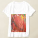 Rich reds dominate the surface, balanced by warm earth tones and flashes of green, creating depth and visual tension.