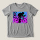 Esta camisa apresenta uma imagem de silhueta de uma corrida de ciclistas contra um fundo de abstrato azul e rosa violeta. A imagem da silhueta está em preto, com as bordas de fundo tapadas contra o fundo. Única, e esta design parece excelente em várias das cores oferecidas, incluindo preto. *O Clip art usado neste design é protegido por direitos autorais pela Encore Software, Inc., que permite o uso a seus licenciadores. Todos os direitos reservados.