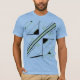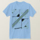 Um olhar polido e contemporâneo aparece em formas geométricas e linhas em verde-oliva preto e claro, com uma grande faixa pelo centro, todos se unindo para criar um desenho abstrato, inclinado diagonalmente. Foto aqui em uma camiseta "azul bebê" (Canvas Bella) (com vários estilos de camisa e cores para escolher). Inspirado pela simplicidade e ousadia do estilo retrô MCM, o design projeta uma qualidade artística elegante para uma versátil e moderna adição ao seu visto casual e cotidiano (seja em casa, socializando-se com amigos, praticando esportes ou correndo pela cidade). A design de camisa como "arte 'vestível'" também expressa um sentido de seu estilo individualizado, contribuindo para o sentimento de ser "unido" e criativo em suas escolhas pessoais de guarda-roupa.