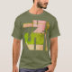 Apresenta-se um design de arte contemporânea de formas ousadas e geométricas em vários tons de rosa e verde-oliva, inspirado no estilo da arte tribal e dos elementos modernos de abstrato. Foto aqui em uma camiseta "verde-fadiga", com uma variedade de estilos de camiseta e cores para escolher. Este olhar geral de "arte 'vestível' é ousado, vibrante e artístico, uma classe e tendência para o visto casual do dia a dia (para atividades do trabalho/escola ao esporte, relaxando/socializando/administrando tarefas pela cidade). Especialmente para aqueles que trabalham remotamente e/ou passam muito tempo em casa, a camisa contribui para o sentimento de estar "vestida" e "montada", com um estilo personalizado.