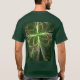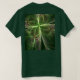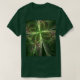 abstrato de Camiseta de T-Shirt fileia um trabalho digital em forma de trevo verde que usa paleta de tons verdes profundos e desenho complicado em primeiro plano. O design é feito de linhas finas e leves que formam uma noiva com uma estranha forma de trevo de quatro folhas. Toda a composição é enfeitada com luzes bokeh no fundo e, no geral, cria uma linda, intrigante e atraente imagem surreal. O trabalho de arte é um fractal, criado com um dos melhores fractais de hoje, portanto as linhas têm uma simetria algorítmica que ajuda o design final e a impressão.