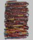 Listras horizontais de várias cores são colocadas em camadas, produzindo um padrão rítmico, abstrato. Linhas verticais pequenas e brancas são intercaladas em toda a composição, acrescentando um elemento de contraste.