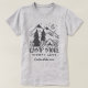Crie uma camiseta personalizada exclusiva para a próxima viagem de acampamento ou excursão ao ar livre. Apresenta a citação de "acampamento mais, menos preocupação" em cinzas rústicas que aparecem debaixo de uma ilustração desenhada manualmente de uma tenda de acampamento em uma floresta de pinheiros com uma ascensão lua crescente sobre picos de montanha com capa de neve. A maneira perfeita de comemorar uma viagem especial, ou para qualquer um que adora acampar, você pode personalizar esta camisa de acampar com sua escolha de texto embaixo da design. Adicione seu destino de acampamento, o ano ou um nome de família para um toque especial.
