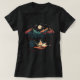 Um legal design para acampar amantes que apresentam uma paisagem de montanha à noite com uma tenda e uma fogueira por um lago.