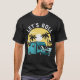 Um legal design de tipografia para amantes de acampamento com uma câmera no pôr do sol, que diz: Vamos roll.