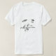 Um tee ousado ao estilo de esboço mostrando um homem em um camelo assistindo OVNIs sobre as pirâmides. Design preto e branco minimalista. Antigo Egito encontra mistério de ficção científica