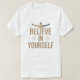 Uma mensagem de motivação centra-se num contexto transparente, com o texto "ACREDITAR EM SI MESMO" a ser ousado. Acima do texto, aparece uma silhueta de uma pessoa com braços estendidos. "Empoderamento em foco, ACREDITE EM SI, com armas abertas para o sucesso"