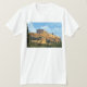 Camiseta escura básica de Canvas branca de Bella, com uma imagem do glorioso Partenon sobre a Acrópole e os arcos do anfiteatro Herodes Atticus, em Atenas, Grécia. Veja toda a coleção de Roupas de Grécia na seção ROUPA.