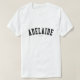 Verifique para fora este t-shirt de Adelaide! É você de Adelaide, Austrália? Você tem um amigo ou um membro da família que amem Adelaide, Austrália? Em caso afirmativo, este t-shirt da "bandeira" é exatamente o presente que você está procurando! As características de design "Adelaide" na rotulação preta arqueada na pia batismal clássica da faculdade.