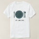 Camiseta fácil, DYI, com sua própria imagem e texto para celebrar a aposentadoria de garçom/garçom/garçonete aposentado. Eu usei uma imagem com um prato e um tableware, mas você pode carregar uma imagem / foto diferente. Lembre-se de trocar o texto por palavras suas. Escolhi uma fonte elegante e moderna para o texto, mas se você quiser algo diferente, você pode facilmente mudar essa fonte na plataforma do design. Observe que você pode adicionar um texto mais longo se quiser.