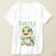 This high-quality graphic shows a smiling green turtle with large expressive eyes, surrounded by dainty flowers.