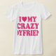 Eu adoro a minha namorado louca. Surpreenda seu amor excelente, seu marido ou seu namorado de uma forma criativa e engraçada. Design para vestuário, t-shirts, acessórios e outros artigos, de uso exclusivo e de captura ocular.