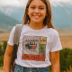 Inspire um amor pela aventura com esta camiseta feminina do "Aventura Aguarda-Te em Busca". Apresentando um design divertido e retrô com um clássico vagão de estação, pinheiros, e uma vibração de acampamento, esta camisa é perfeita para jovens exploradores que amam o exterior. Quer ela esteja indo numa viagem de família, caminhando na natureza, ou sonhando com sua próxima grande aventura, esta confortável e na moda é uma escolha excelente. Feita para meninas que apreciam viagem, exploração e o excelente ao ar livre, esta camiseta faz um presente perfeito para pequenos aventureiros. Deixe-a abraçar sua anderruba de uma forma divertida e aventureira!