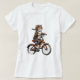 The Biker Cat T-shirt design features a colorful graphic of a lively cat wearing a helmet and sitting on a bicycle.