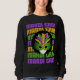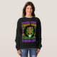 Na moda Afro MARDI GRAS na popular cor roxa, ouro e verde. A design mostra uma silhueta preta vestindo uma máscara de mascarada. A frase MARDI GRAS é repetida nas mesmas cores de fundo em tipografia em negrito. É celebrada a camiseta ideal Mardi Gras para vestir nas ruas de Louisiana, Nova Orleans, Brasil e qualquer lugar onde Mardi Gras.