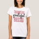 Aceite o espírito de gratidão com a nossa camiseta branca "Graças a Deus abençoada". Este elegante design apresenta as palavras "Graças", "Grata" e "Abençoada" em fontes arrojadas e cursivas, criando uma declaração impressionante e significativa. Perfeito para as reuniões de Ação de Graças, jantas familiares, ou apenas um lembrete para estimar as coisas boas na vida, esta camisa é uma bela expressão de apreciação e positividade. Vista-o com orgulho e espalhe a mensagem de gratidão para onde quer que vá.