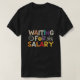Leitura e relacionável: Esta camiseta humorística captura a experiência universal de aguardar ansiosamente o pagamento! O texto "Esperando por Salário" é exibido em um esquema de multicores vibrante, com cada letra uma sombra diferente, adicionando um toque lúdico e relacionado. Perfeito para qualquer pessoa que possa se relacionar com a antecipação e o entusiasmo (ou às vezes frustração) de esperar que seu salário chegue.