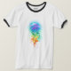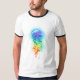 Água-viva grande, iridescente, desenhada artisticamente, brilhante, com longos tentáculos em branco, pintada sobre fundo de aquarela multicolorido. Água-viva arco-íris.