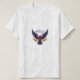 Esta camiseta apresenta uma ilustração impressionante de uma águia com asas estendidas, reproduzida em um estilo estilizado, quase cartoonista. A plumagem da águia é uma mistura de azul profundo e vermelho vibrante, com asas ouros se estendendo de seus lados. A frase "Filha do Céu" é exibida de forma destacada em uma fonte curvada e estilizada no topo. Um pequeno impressão vermelho do lábio é visível acima da cabeça da águia, adicionando um toque único. Esta design transmite uma sensação de força, liberdade e empoderamento feminino, fazer-a uma peça convincente para uma camiseta.
