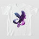 Águia careca voadora americana lutando uma cobra (cobra) em frente a um sol vermelho. Ilustração gráfica de design de vida selvagem para amantes de os animais. Versão roxa e azul.