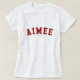 Aimee! É seu nome Aimee? Ou você tem uma esposa, um namorada, um membro da família fêmea ou um amigo fêmea nomeados Aimee? Em caso afirmativo, esta camisa da "bandeira" é exatamente o presente que você está procurando! As características de design "Aimee" na rotulação vermelha arqueada através da caixa na pia batismal clássica da faculdade.