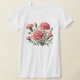 Ilustração botânica vítrea das flores cor-de-rosa das flores do cravo-da-ajustado fino da camiseta feminina.