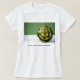 T-shirt temático da alcachofra com o provérbio, "parte externa espinhosa, tenderhearted dentro"