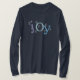 Os cartões de cartões de natal, as sacolas, as canecas, os t-shirt, e outros artigos do feriado com lavanda, cerceta, e texto e flocos de neve azuis lêem a "ALEGRIA"!